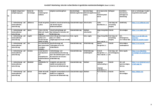 KI.ASSIST-Monitoring: Liste der recherchierten KI-gestützten Assistenztechnologien (Stand: 12/2021)
